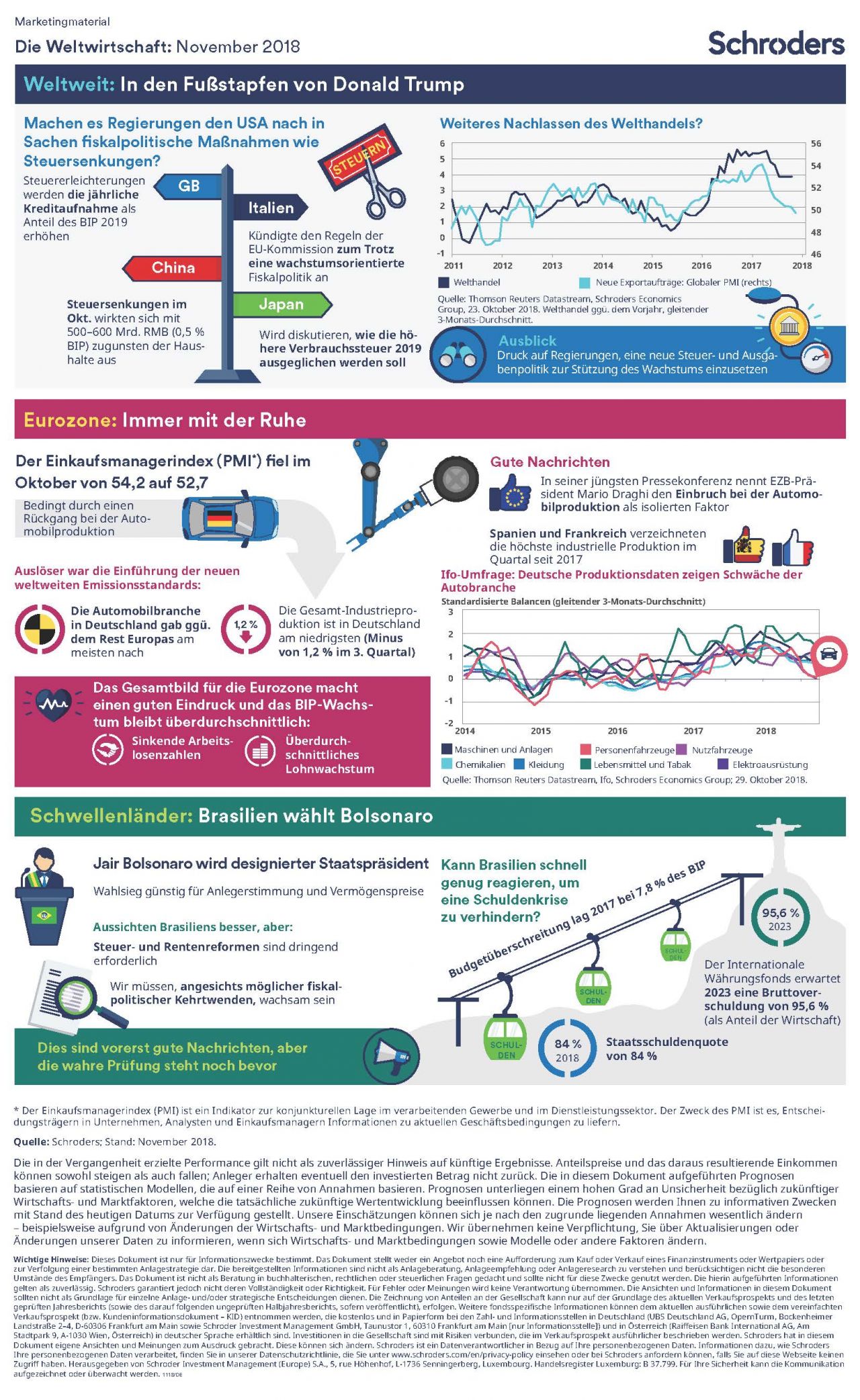 Die hierin geäußerten Ansichten und Meinungen stellen nicht notwendigerweise die in anderen Mitteilungen, Strategien oder Fonds von Schroders oder anderen Marktteilnehmern ausgedrückten oder aufgeführten Ansichten dar. Der Beitrag wurde am 30.11.18 auch auf schroders.com veröffentlicht.