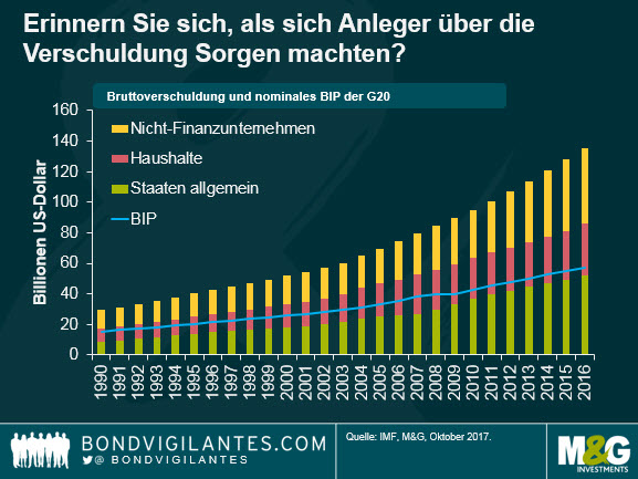Die Verschuldung der G20-Volkswirtschaften ist über das letzte Jahrzehnt hinweg kontinuierlich gewachsen und liegt nun bei 260 Prozent des BIP – in absoluten Zahlen: 135 Billionen US-Dollar. Oder in Ziffern: 135.000.000.000.000,00 USD. Das ist eine große Zahl. Zwar entspricht diesem Soll auch ein Haben in einer anderen Bilanz, doch führt kein Weg daran vorbei, dass Regierungen, Unternehmen und Haushalte noch nie in solch einem Ausmaß über ihre Verhältnisse gelebt haben wie heute. Deshalb liegen die Zinsen in den entwickelten Volkswirtschaften so niedrig und dürften die Niveaus vor der Finanzkrise 2008 so schnell nicht wieder erreichen. Für den Anleger bedeutet das höhere Risiken auf dem Weg zur Rendite.