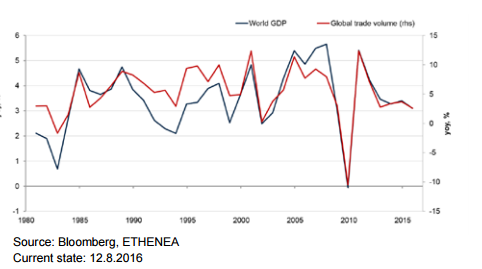 Aus wirtschaftstheoretischer Sicht bestehen keine Zweifel am Nutzen des Handels, Wachstum und Handel haben sich in den letzten Jahrzehnten Hand in Hand entwickelt (Grafik 1). Da mag auf den ersten Blick überraschen, dass beide US-Präsidentschaftskandidaten Hillary Clinton und Donald Trump sich zurückhaltend bis offen abneigend gegenüber Handelsabkommen äußern. Die Tatsache, dass Hillary Clinton, eine frühere Verfechterin der Transatlantischen Handels- und Investitionspartnerschaft (TTIP), dem Abkommen nun ablehnend gegenübersteht, ist jedoch kein Einzelfall. Sigmar Gabriel, der deutsche Wirtschaftsminister und anfänglich starker Befürworter des Handelsabkommens, äußerte sich ebenfalls zurückhaltender zu den laufenden Verhandlungen, als der öffentliche Protest dagegen zunahm.