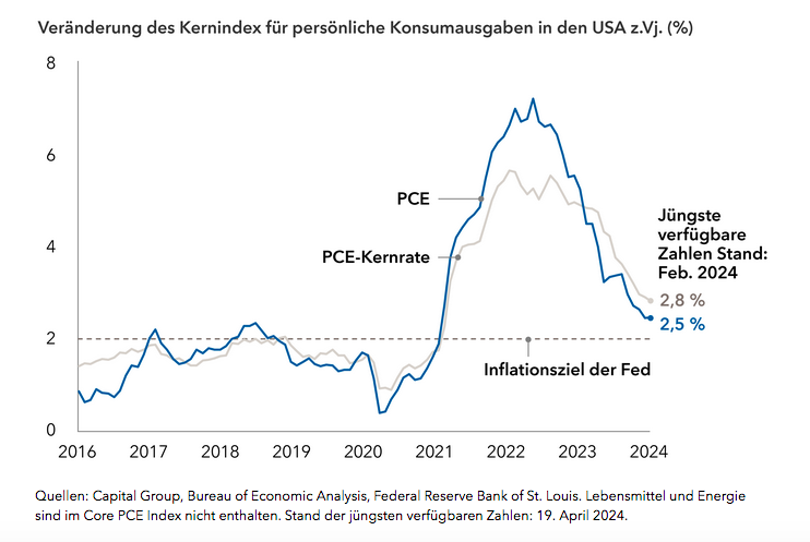 Die Inflation ist stark zurückgegangen, liegt aber immer noch über dem Ziel der Fed von 2,0 %