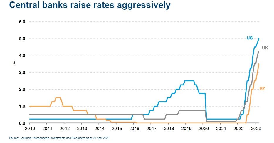 Den englischen Originalkommentar finden Sie unter https://www.columbiathreadneedle.co.uk/en/inst/insights/have-interest-rates-peaked/