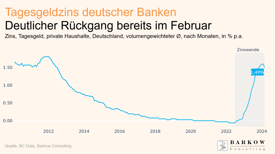 in dem die Tagesgeldzinsen bereits im Februar wieder gesunken sind.
