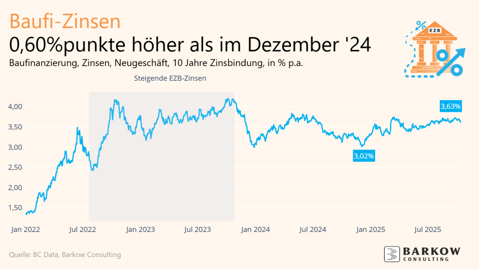 Nachdem jüngst die EZB den Einlagenzins um 0,25 Prozentpunkte auf 3,75 Prozent gesenkt hat, haben viele Sparkassen auch ihre Zinsen für die Kunden gesenkt. Dies hat Barkow Consulting analysiert. Während des Zinserhöhungszyklus der EZB haben die Sparkassen Zinsvorteile jedoch laut den Analysten erst sehr spät und auch nur in sehr geringem Umfang an ihre Kunden weitergegeben. Beim Tagesgeld ergab das Marktmonitoring von Barkow Consulting bei 352 Sparkassen auch zuletzt nur einen durchschnittlichen Zinssatz von bescheidenen 0,53 Prozent. Ihr Marktmonitoring zeigt aber auch, dass die Sparkassen Zinssenkungen schneller weitergeben als Zinserhöhungen. So haben in den drei Wochen seit der EZB-Zinssenkung bereits 11 Sparkassen die Zinsen um bis zu 0,50% gesenkt. Eine Zinserhöhung hat Barkow hingegen zuletzt vor fünf Wochen beobachtet. (jk)