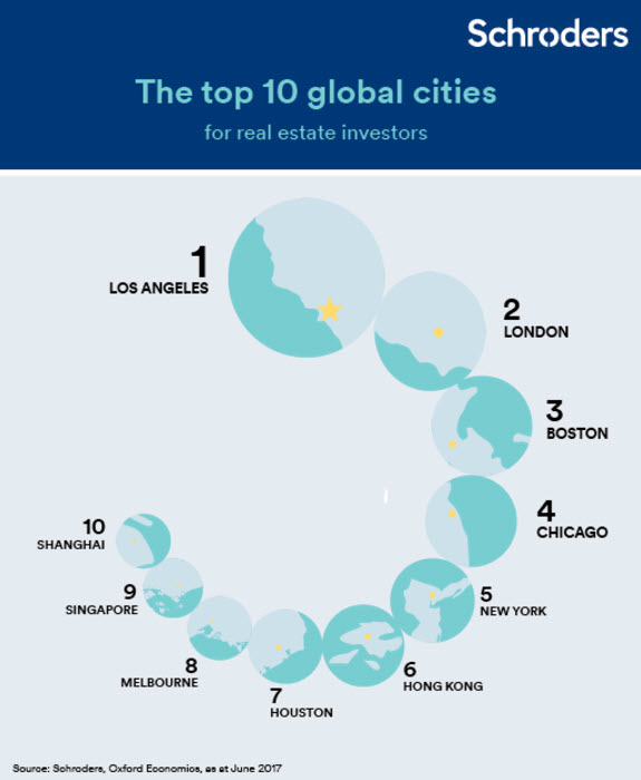 Los Angeles has been named as the top global city for real estate investing in the third publication of the Schroders Global Cities 30 index. London followed closely in second place.